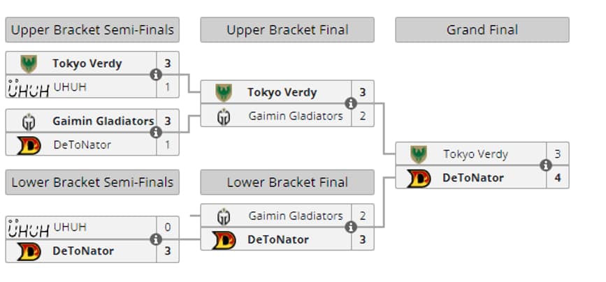 Regional 2 was similarly a heated battle. Except this time DeToNator replaced Nimmet55 as the Lower Bracket Final Champs and proceeded to the final against Tokyo Verdy. They were swiftly defeated as Verdy racked up a 4-0 scoreline to put them back on top. Notice that these 3 teams continually meet in the deep bracket, this pattern remains for regional 3. Tokyo Verdy took the top spot, with Nimmt55 losing the hard-fought battle in two sets. Again we see DeToNator right behind, their Upper and Lower Bracket final loss sealed their fate just out of Winter Major contention… or did it (spoilers it didn’t). Now quick qualifications walkthrough. Asia-Pacific North and Asia-Pacific South only get one team in the Major, the 1st and 2nd place teams from both regions are sent to a qualifier to determine who will head to the Winter Major. Nimmt55, with a 1st, 2nd, and 3rd place finish, were on track to head to the qualifier with Tokyo Verdy, but for an unknown reason (there’s probably a reason, I heard it was work-related issues, I’m just way too lazy to look it up… also this article is getting a bit long isn’t it?) were unable to make accommodations for travel to the major and thus forfeited their spot at the qualifier.